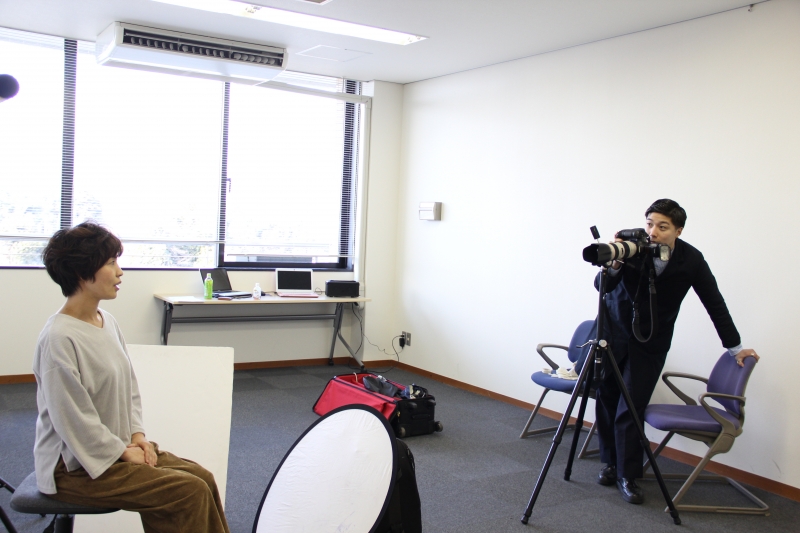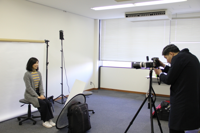 スタッフ上原「緊張してどうしても眉が上がってしまうのですが、目を閉じてから目を開けると良い、とカメラマンさんに教えてもらい、自然な表情ができました」