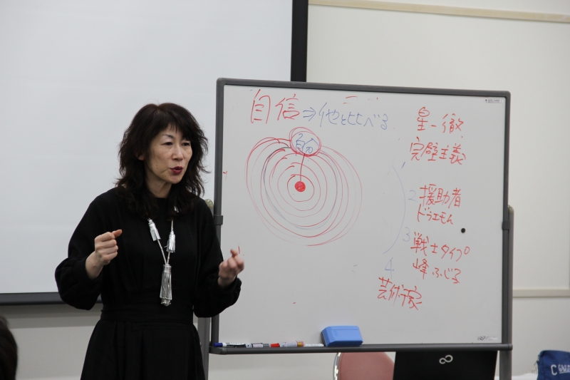 ファッション、パーソナルカラー診断、コミュニケーションや相手への心配りなど外見から内面まで細かくお話し頂き、婚活だけでなく人生を豊かにできる術を学びました。参加者も最初は緊張していましたが、徐々に田村ワールドに魅せられて、講座終了後は個人的に相談に来るなど、しっかりと心に響いたようです。