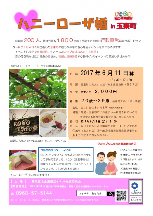 昨年も大好評だったハニーローザ婚 in 玉東町を今年も開催します。