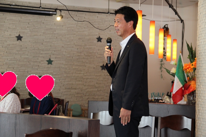 16時00分 ゲーム終了後、隣のレストラン「グリーンスター」へ移動、荒尾市長のご挨拶をいただきました。