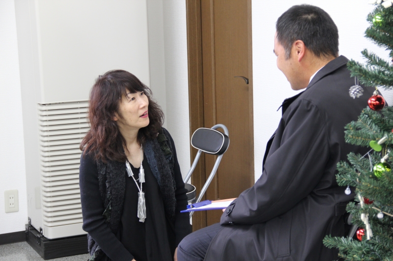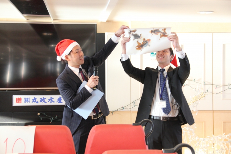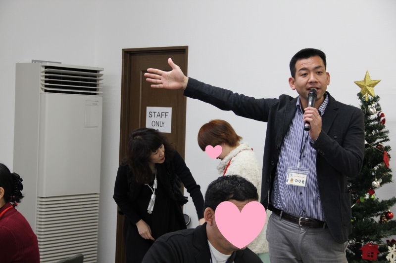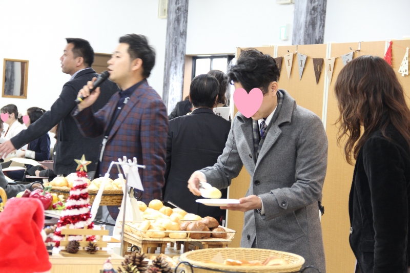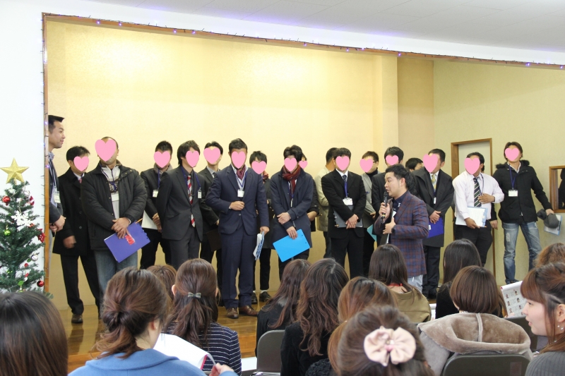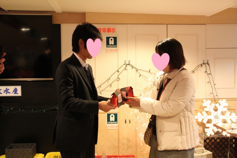 16時 日もくれてきて、女性からは長洲町の金魚タオルを男性へ、男性からはハンドメイドの金魚がまぐちを女性へクリスマスプレゼント交換タイム。気持ちも盛り上がり、気になる方を記入する「告白カード」をそれぞれ書きます。