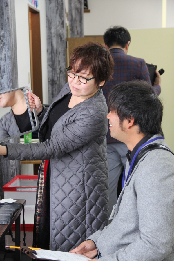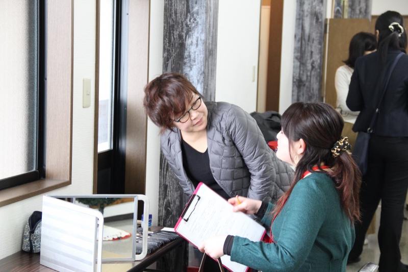 古庄講師からは、ヘアメイクのアドバイスや、実際に直してもらっている参加者も。少し手を加えるだけで魅力的に変身させていくテクニックはさすが!!