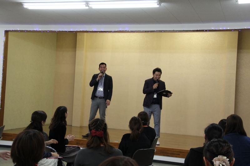男性と女性に分かれて講師よりミニ講座。男性には田村講師から「カツ!」が入ります。