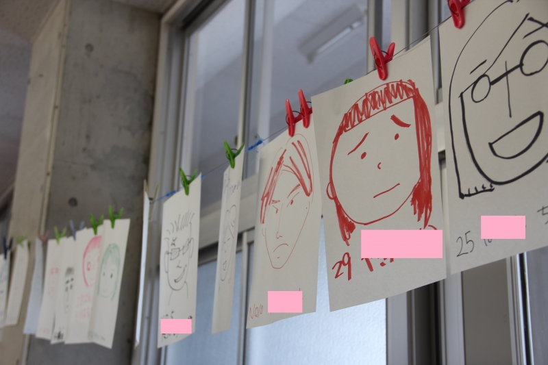 水野先生による道徳の授業では、まず自分の似顔絵書きからスタート。みなさん特徴をつかんでおります。似顔絵をもとに自己紹介タイム。