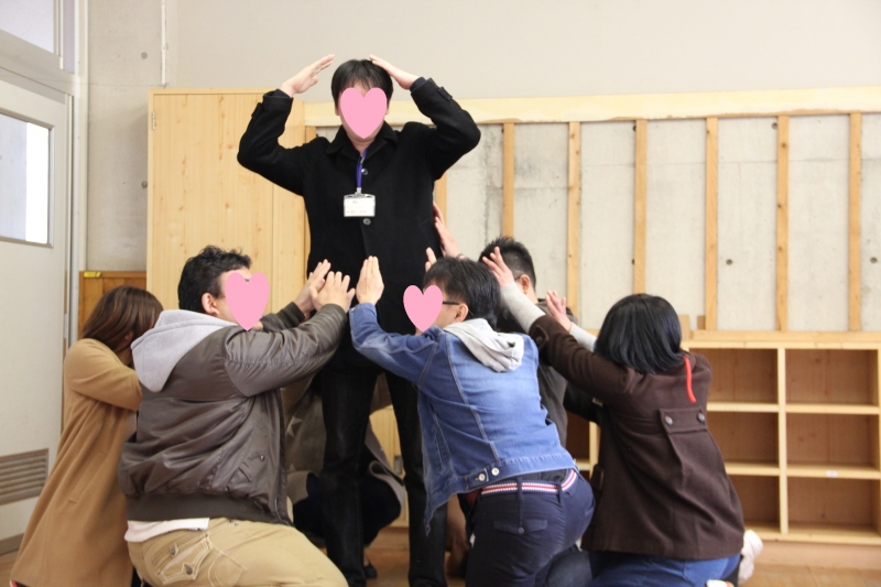教室を移動して、下の名前順に輪になったり、好きな給食を伝えたり、グループになって熊本城や阿蘇山を表現したり、手遊びをしたりと参加者の体験型交流で仲良くなれる仕掛けがもりだくさん。