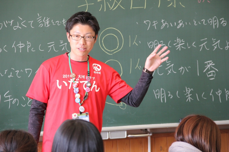 ユニークな入学式で歓迎された参加者たちはいざ教室へ。担任はシティFMで活躍中の水野直樹先生。