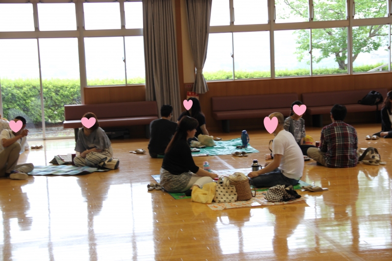 外でのピクニックの予定でしたが、小雨のため室内でお弁当を食べました。