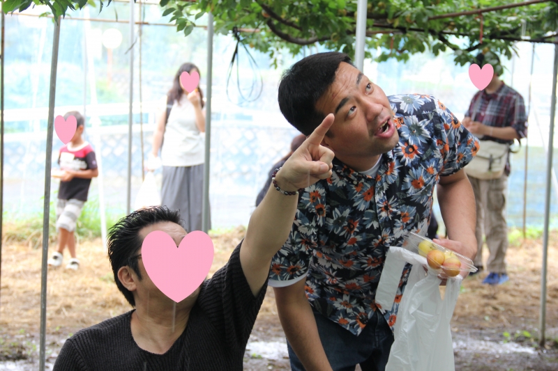 背の低い子どもたちには、男性が抱っこをしてあげたり、取ってあげたり・・・。ここでいいところを見せようと男性もアプローチです。もっこすファイヤーの二人も初めてのハニーローザに感動!!