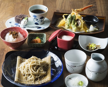 厳選した地元の食材が味わえる旬彩SOBA「常次郎庵」のランチを女性と会話を楽しみながら召し上がっていただきます。(料理写真はイメージです。)