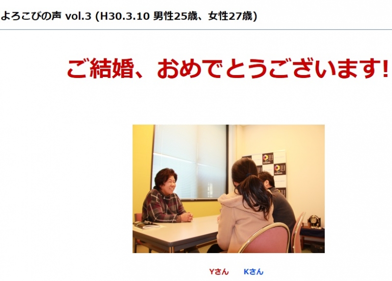 成婚された方からのメッセージをまとめた「よろこびの声」を新設しました!