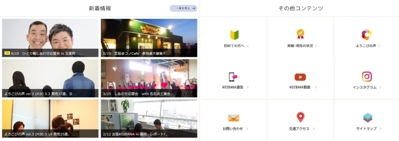 「KOIBANA通信」、「KOIBANA動画」、「KOIBANAインスタグラム」など、KOIBANAの情報ツールをコンテンツに追加し、すぐにチェックできるようにしました!